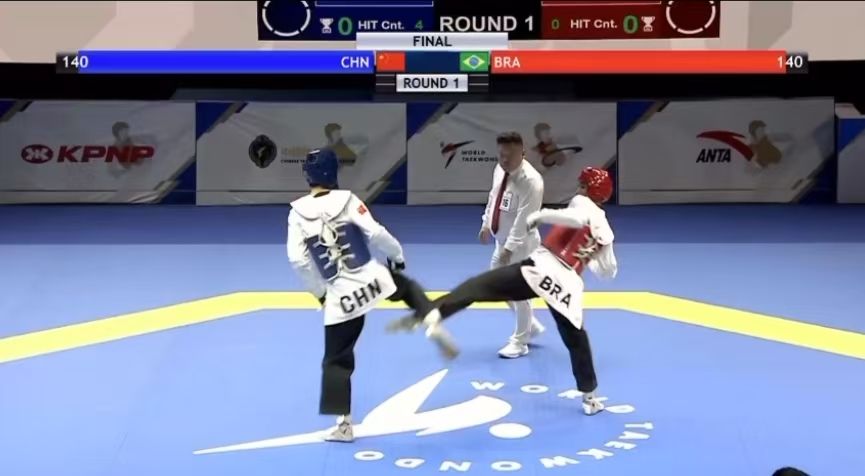 決賽首局比賽,中國(guó)隊(duì)肖樹(shù)楠以一個(gè)腹部踢擊得分加對(duì)手出界拉開(kāi)分差,占據(jù)優(yōu)勢(shì)后中國(guó)隊(duì)持續(xù)迎擊,以能量值130:70獲勝。第二局中國(guó)隊(duì)開(kāi)場(chǎng)防守松懈,被扣掉40分(能量值),盡管后程中國(guó)隊(duì)加強(qiáng)攻勢(shì),還是以能量值65:75不敵對(duì)手。在決勝局中,巴西隊(duì)兩記直拳打開(kāi)局面,能量值占優(yōu),此后雖然巴西隊(duì)兩次被判消極進(jìn)攻,但中國(guó)隊(duì)未能把握住機(jī)會(huì),最終以能量值110:115輸?shù)舻谌?,大比?:2告負(fù)。