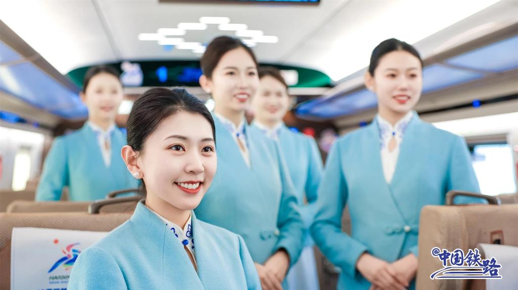 “此次投入運(yùn)營的新車體采用了新型高寒復(fù)興號智能技術(shù)提升型動車組,在智能化、人性化設(shè)計方面實現(xiàn)了全新突破。列車定員和存放面積都有所增加,并特別改造了雪具專用柜,以更好地滿足賽事工作人員及觀賽旅客的多元化需求?!敝袊F路哈爾濱局集團(tuán)有限公司哈爾濱客運(yùn)段副隊長孫嘉慧說。 列車上,乘務(wù)員身著帶有雪花刺繡的藍(lán)白衣裙,熱情、得體地與乘客交流。車廂內(nèi)印有亞冬會元素的時刻表、貼紙隨處可見,營造出濃厚的冰雪體育盛會氛圍。