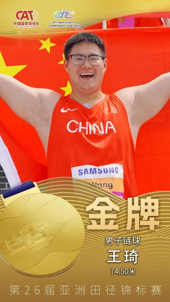 當(dāng)日上午率先進(jìn)行的男子鏈球決賽中,中國隊(duì)名將王琦以74米50的成績力壓兩名日本選手奪冠。女子1500米比賽中,“00后”選手李春輝以4分10秒58的成績奪冠,大幅提升個(gè)人最好成績。此外,女子撐桿跳高比賽中,中國隊(duì)選手牛春格以4米48的成績奪冠,她的隊(duì)友徐惠琴收獲銀牌。男子十項(xiàng)全能比賽中,費(fèi)翔以7634分為中國隊(duì)再添一金。