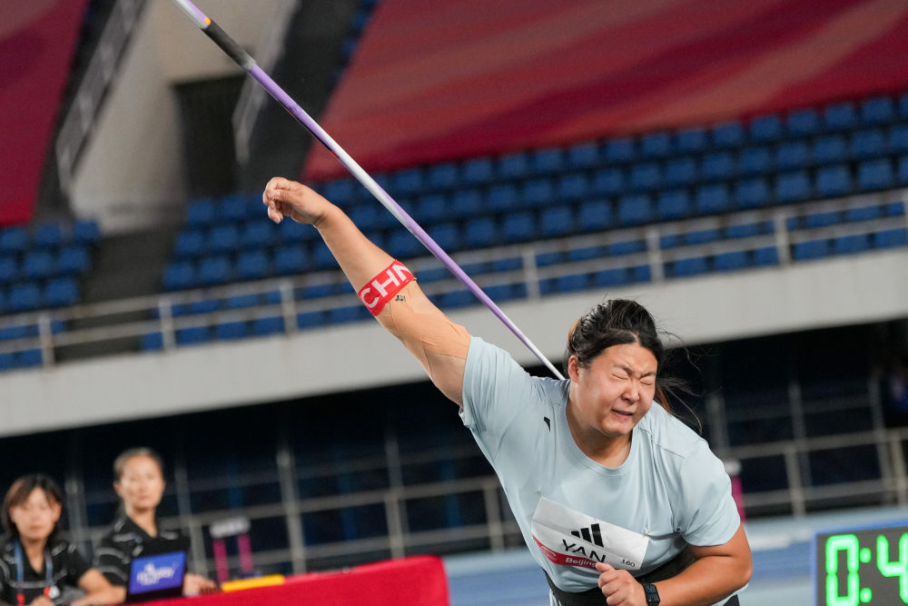 9月7日,中國選手嚴子怡在女子標槍比賽中。新華社記者 鞠煥宗 攝