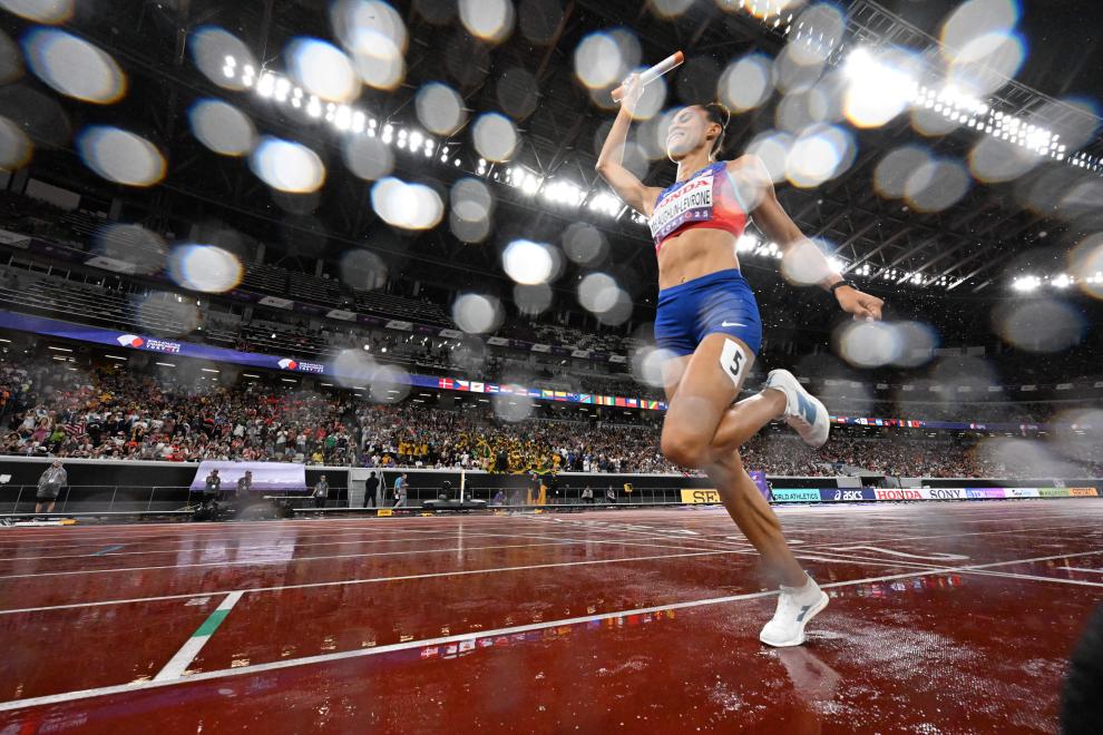 麥克勞林在東京田徑世錦賽以47秒78奪得400米世界冠軍,打破塵封42年的世錦賽紀(jì)錄。由此,她成為史上首位在400米跑和400米欄兩個(gè)項(xiàng)目都獲得過(guò)世界冠軍的運(yùn)動(dòng)員。此外,在東京世錦賽上,她還隨美國(guó)隊(duì)贏得4X400米接力冠軍。