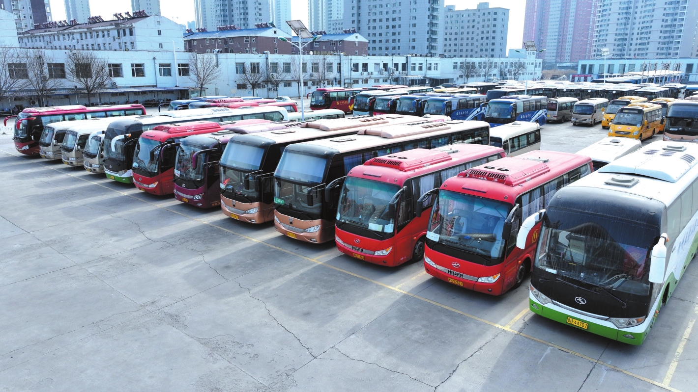 忻州汽車客運(yùn)中心的大巴車整裝待發(fā)