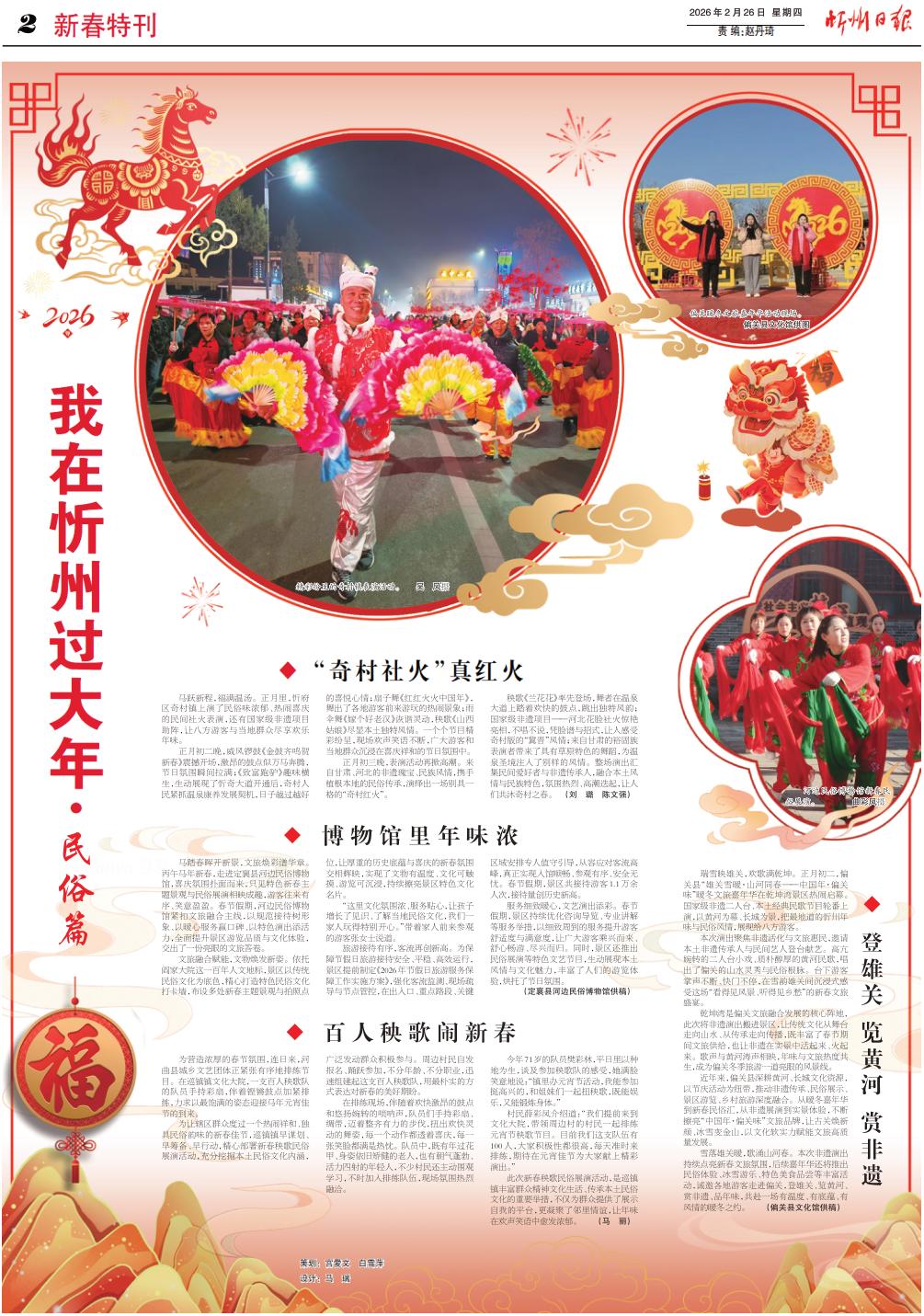 近年來(lái),偏關(guān)縣深耕黃河、長(zhǎng)城文化資源,以節(jié)慶活動(dòng)為紐帶,推動(dòng)非遺傳承、民俗展示、景區(qū)游覽、鄉(xiāng)村旅游深度融合。從暖冬嘉年華到新春民俗匯,從非遺展演到實(shí)景體驗(yàn),不斷擦亮“中國(guó)年·偏關(guān)味”文旅品牌,讓古關(guān)煥新顏、冰雪變金山,以文化軟實(shí)力賦能文旅高質(zhì)量發(fā)展。