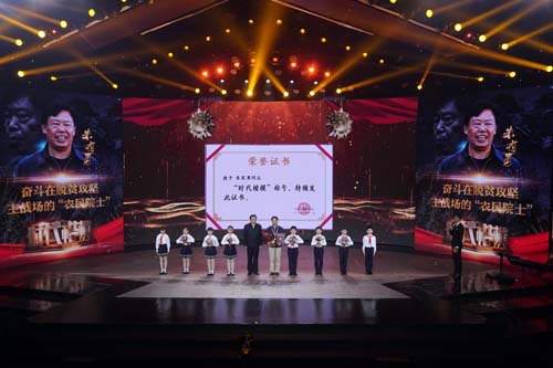 朱有勇在“時代楷?!卑l(fā)布儀式上領取獎章和證書(11月29日攝)。 新華社記者 金良快 攝