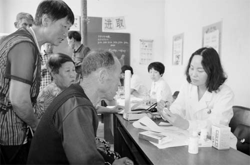 義診期間,通過為村民負責(zé)查心電圖、測血糖、量血壓和與病人的交流,義診醫(yī)療隊隊長盧琴了解到,不少中老年高血壓患者吃過降壓藥,而一旦血壓平穩(wěn)后,便自行停藥,一些人直至發(fā)展成腦梗塞、腦出血,才來找醫(yī)生。“這說明老鄉(xiāng)們對健康生活方式還不夠關(guān)注,防病大于治病的觀念還沒有形成”。盧琴說。“為此,我們在義診中,更加注意對老百姓的健康教育?!碑?dāng)?shù)乩习傩諏@種健康扶貧送醫(yī)下鄉(xiāng)活動十分歡迎,他們希望這種“天使先鋒走基層”義診活動最好是經(jīng)常性的。圖為義診現(xiàn)場。