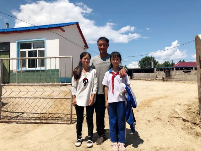 臨近中午,三年級的姑娘趙金珠放學回家,撲進了爸爸的懷抱。記者給他們一家人合張影,趙海龍自然地伸開雙臂,緊緊地摟住妻子和女兒,鏡頭前三口人甜蜜微笑,一家之主趙海龍更是滿臉的自豪和幸福。