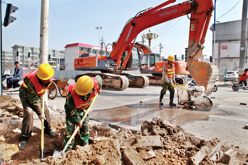 圖為勝利街改造工程開挖道路管線探槽現(xiàn)場。梁春霞 攝