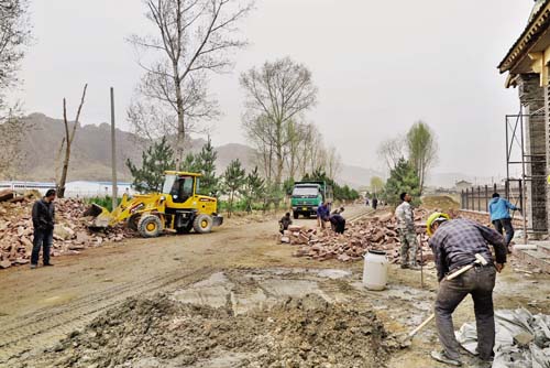 據(jù)了解,為進一步改善農(nóng)村人居環(huán)境,打造美麗鄉(xiāng)村,今年以來,岢嵐縣將村容村貌整治工作列為年度重點工作,大力開展村容整潔工程。按照社會主義新農(nóng)村建設(shè)標(biāo)準(zhǔn),在全縣集中開展以“自有物品入院、殘墻斷壁修復(fù)、三化(綠化、亮化、硬化)建設(shè)同步”為主要內(nèi)容的農(nóng)村環(huán)境綜合整治,以村內(nèi)街道兩側(cè)、鎮(zhèn)村駐地、農(nóng)貿(mào)市場為重點的村容村貌整治。圖為岢嵐縣宋家溝村村容村貌整治施工現(xiàn)場 張志遠 攝