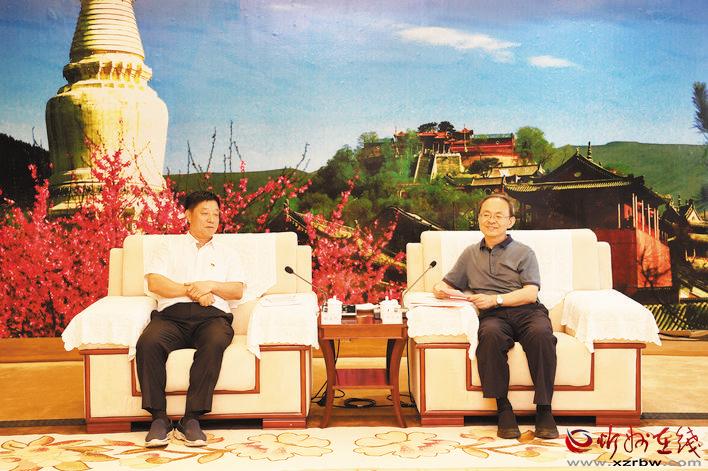 市委書記鄭連生與北京城建道橋建設(shè)集團有限公司黨委書記姚自然會談。本報記者 劉紀森 攝