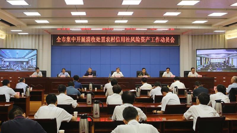全市集中開展清收處置農(nóng)信社風(fēng)險(xiǎn)資產(chǎn)工作動(dòng)員會(huì)會(huì)場(chǎng)。宮清華 攝