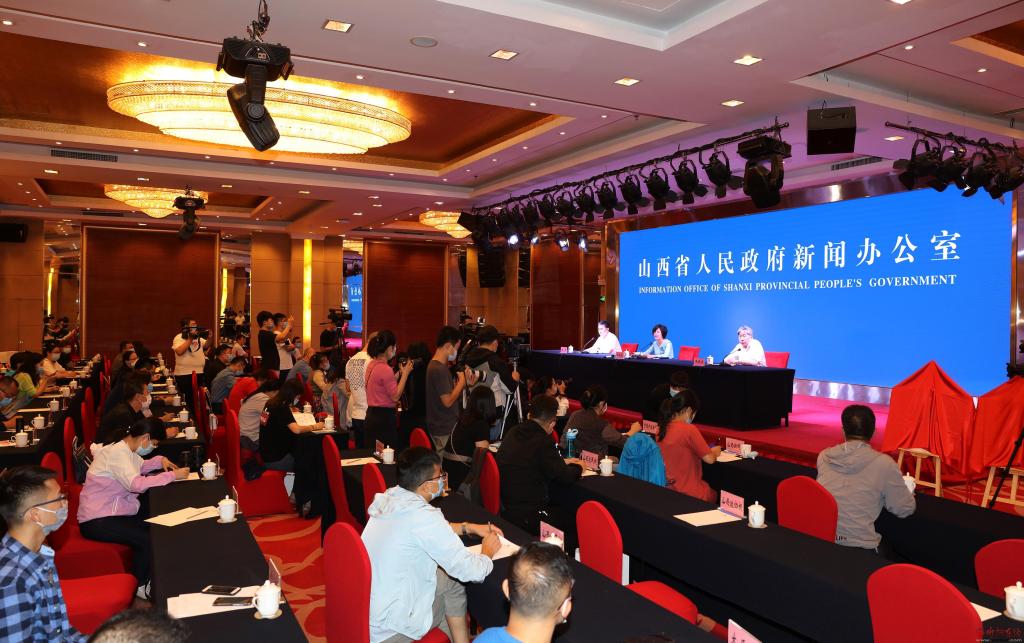 朱曉東介紹忻州市承辦大會相關(guān)情況,公布大會標識、海報和亮點活動,并回答記者提問。范濤攝