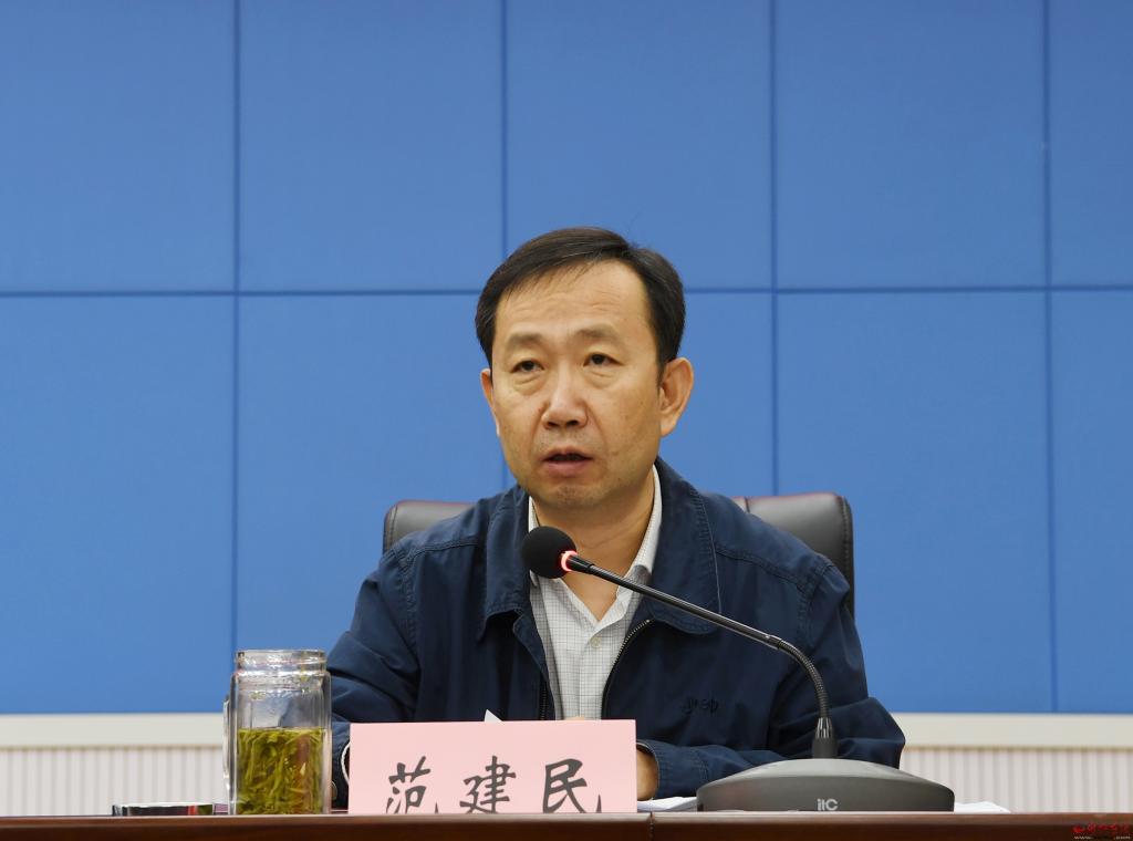 范建民傳達(dá)全省補(bǔ)考進(jìn)位工作調(diào)度會(huì)議精神,通報(bào)今年補(bǔ)考進(jìn)位工作方案和相關(guān)任務(wù)分解情況。劉紀(jì)森 攝