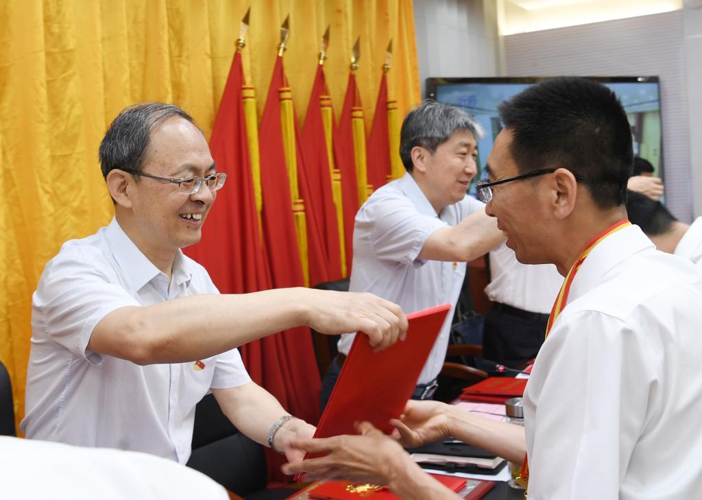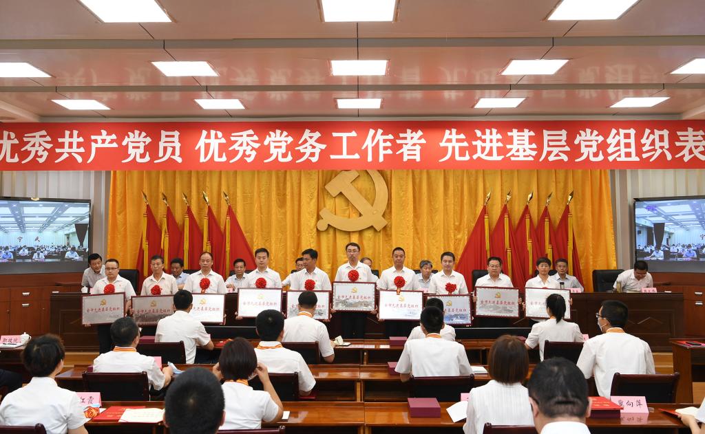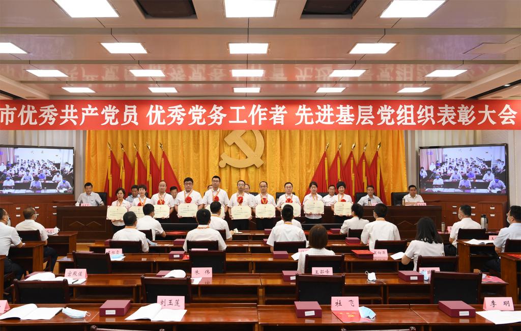 上午8時(shí)30分,大會(huì)正式開(kāi)始,全體起立,奏唱國(guó)歌。來(lái)自全市各行各業(yè)、在工作中取得優(yōu)異成績(jī)的99名共產(chǎn)黨員、100名黨務(wù)工作者和100個(gè)基層黨組織,分別被授予“全市優(yōu)秀共產(chǎn)黨員”“全市優(yōu)秀黨務(wù)工作者”“全市先進(jìn)基層黨組織”榮譽(yù)稱號(hào)。受到表彰的優(yōu)秀個(gè)人和先進(jìn)集體代表先后上臺(tái)領(lǐng)獎(jiǎng),會(huì)場(chǎng)響起熱烈掌聲。