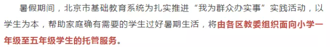 7月2日,北京市教育委員會表示,北京市各區(qū)教委將組織面向小學一年級至五年級學生的托管服務(wù)。