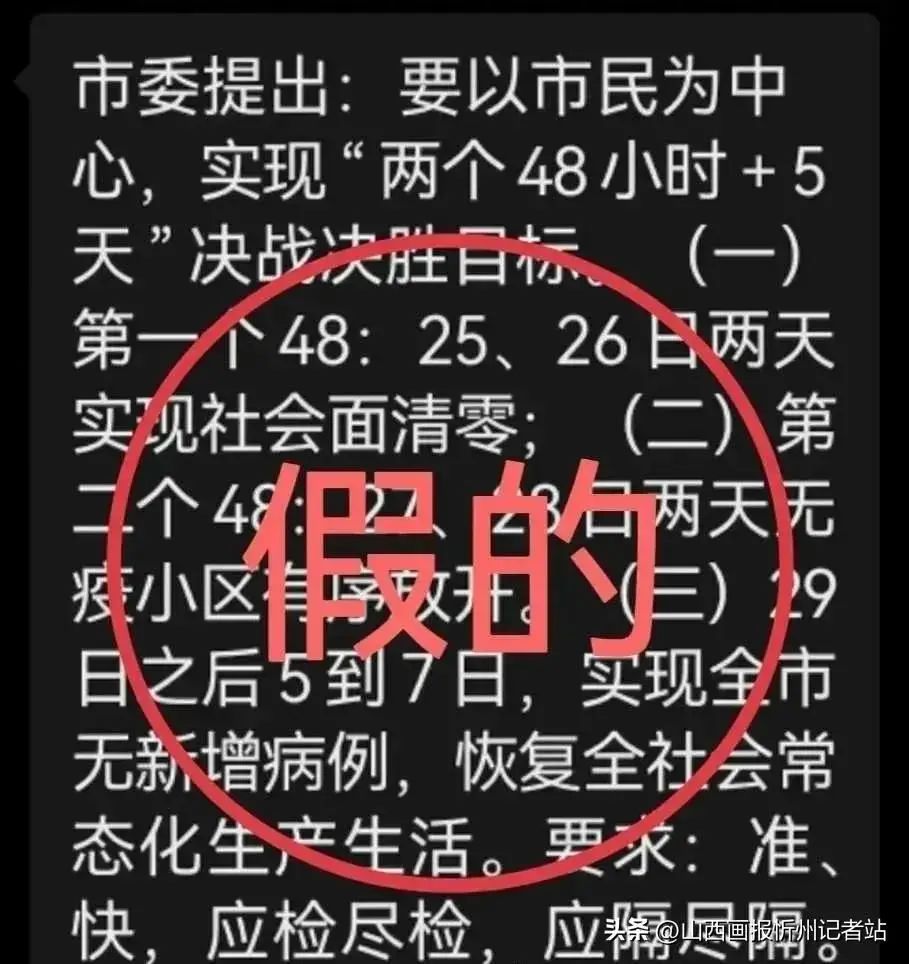 經(jīng)查,這是西安市10月份的政策,并不是山西,該消息在其他地市也有流傳。造謠者張冠李戴,故意去掉前邊的地名,讓人以為是本地消息,混淆視聽,制造混亂。請市民對網(wǎng)絡(luò)信息一定要保持客觀分析的態(tài)度,以官方發(fā)布為準(zhǔn),不造謠、不信謠、不傳謠。