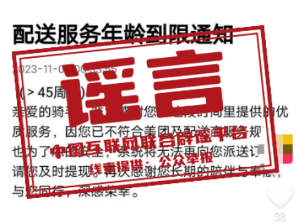 真相:近日,一張“配送服務(wù)年齡到限通知”的截圖在網(wǎng)絡(luò)流傳,稱“年齡超過45歲后,就不再符合某外賣平臺及配送服務(wù)商的服務(wù)規(guī)范,系統(tǒng)將不再派送訂單”。經(jīng)向該外賣平臺核實,此信息為謠言。該平臺工作人員在接受記者采訪時稱,考慮到配送過程中相關(guān)安全因素,會對騎手的年齡限制在18周歲至57周歲之間,在此年齡范圍內(nèi),且具有完全民事行為能力和相應(yīng)的獨立勞動能力,身體健康、持有有效健康證且無相關(guān)類型疾病,符合無違法犯罪記錄、熟練駕駛相關(guān)車輛等要求的人員均可注冊為網(wǎng)約配送員,網(wǎng)傳“配送員年齡上限為45歲”系虛假信息。(來源:北京網(wǎng)絡(luò)辟謠、上海網(wǎng)絡(luò)辟謠、湖北網(wǎng)絡(luò)辟謠)