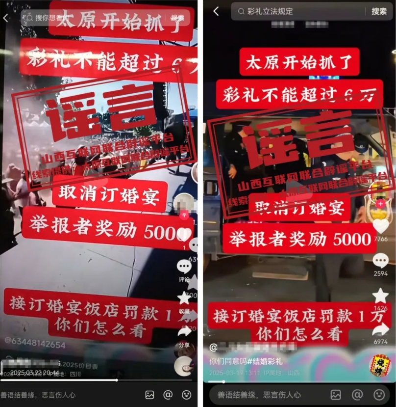 近日,網(wǎng)絡(luò)上流傳“太原彩禮限6萬,違規(guī)者將被罰款甚至拘留”的消息,引發(fā)關(guān)注。經(jīng)屬地相關(guān)部門調(diào)查核實(shí),以上為不實(shí)信息,并無任何官方文件或政策依據(jù)。太原互聯(lián)網(wǎng)聯(lián)合辟謠平臺(tái)已發(fā)布相關(guān)辟謠信息,望廣大網(wǎng)民不聽、不信、不傳。