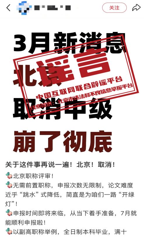 詳情:近期,2025年度職稱評審工作啟動后,網(wǎng)上流傳“北京取消中級職稱”的說法。經(jīng)核實,此言論不實,中級職稱并未取消。據(jù)北京市人社局介紹,申報人可以對照初級、中級、高級職稱不同層級的要求,根據(jù)自身情況申請職稱評審。不同系列的職稱申報具體要求不同,以工程技術(shù)系列為例,本科畢業(yè)需要先取得中級職稱,獲評中級職稱后從事本專業(yè)技術(shù)工作滿5年,才能申報高級職稱。(來源:“北京網(wǎng)絡舉報”微信公眾號)