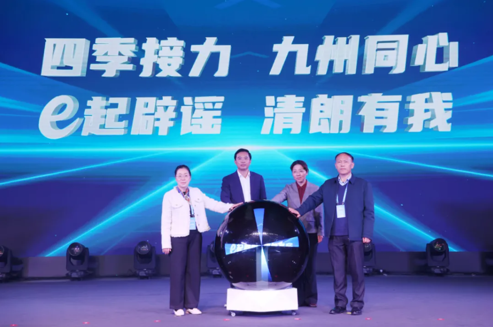 四季接力,九州同心;e起辟謠,清朗有我!第四季活動現(xiàn)場播放了2025網(wǎng)絡(luò)辟謠沙龍回顧視頻,再現(xiàn)了活動從河南的文明之源啟程,穿越廣西的山水清朗,沐浴齊魯?shù)娜屣L(fēng)信義,最后相聚在“雄奇山水、新韻重慶”。 隨著河南省委網(wǎng)信辦副主任李麗、廣西壯族自治區(qū)黨委網(wǎng)信辦二級巡視員肖珊、山東省委網(wǎng)信辦總工程師赫叢慶、重慶市委網(wǎng)信辦副主任魏春代表四地網(wǎng)信辦點亮“網(wǎng)絡(luò)辟謠同心圓”,標(biāo)志著2025網(wǎng)絡(luò)辟謠沙龍圓滿收官。
