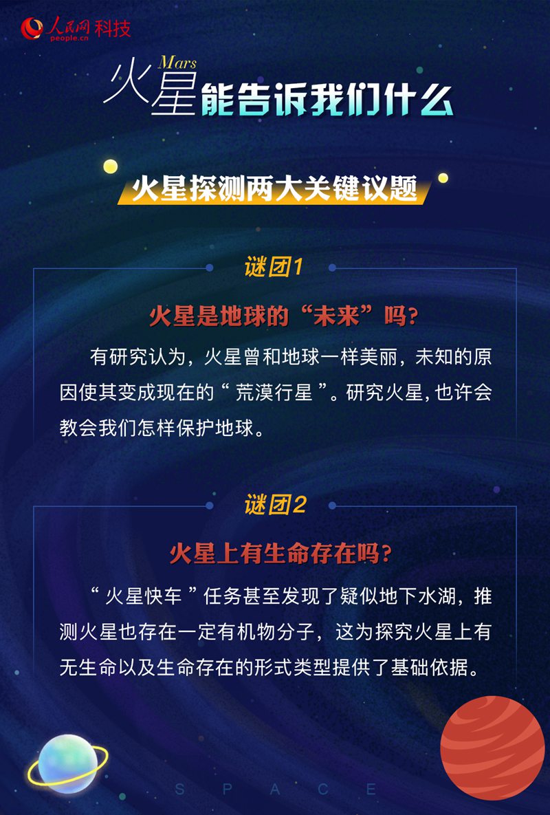 是什么原因?qū)е禄鹦鞘チ怂克鯓訌囊粋€藍(lán)色星球變成現(xiàn)在一片荒漠的紅色星球?其大氣、環(huán)境是如何演化的?火星的今天有沒有可能就是地球的明天?這些都是科學(xué)家們想要通過相關(guān)探測去解答的問題。