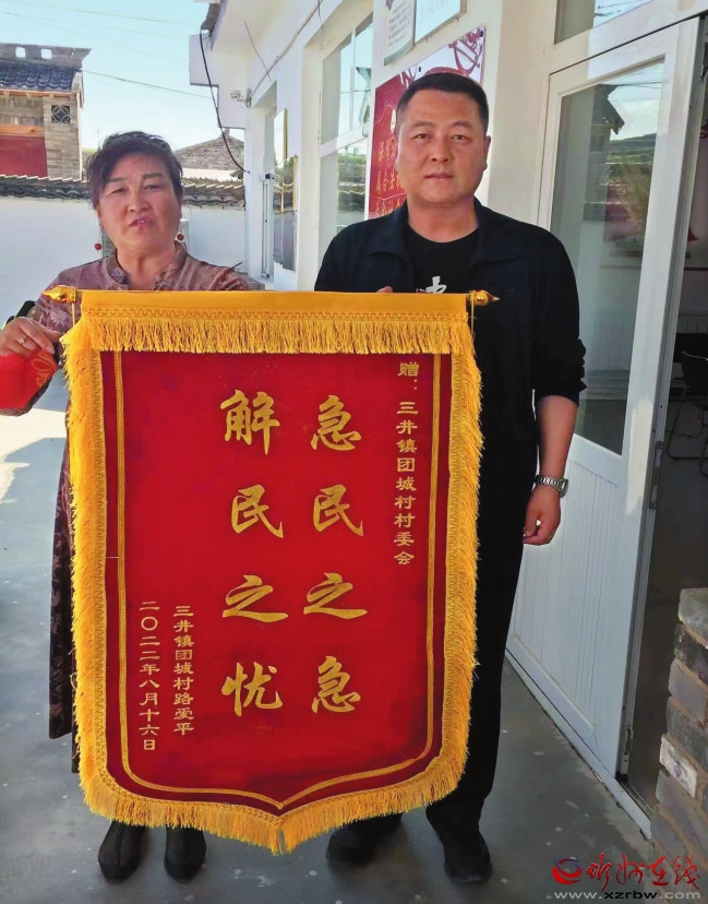 村民路愛(ài)平介紹說(shuō),去年8月9日,岢嵐縣遭遇到了幾十年不遇的特大暴雨侵襲,凌晨4點(diǎn)多,外出辦事的甄繼榮趕回村里,召集村兩委班子成員連夜巡查村民房屋是否有安全隱患,巡查到早上7點(diǎn)時(shí),發(fā)現(xiàn)靠近河道居住的路愛(ài)平和吳貴生兩戶村民的護(hù)坡有被洪水沖刷的痕跡,存在安全隱患,當(dāng)時(shí)還在下著大雨,村里也沒(méi)有工程機(jī)械,無(wú)奈之下,甄書(shū)記及時(shí)聯(lián)系了駐地部隊(duì)的勤務(wù)站,懇請(qǐng)出動(dòng)一臺(tái)大型挖掘機(jī)救援。經(jīng)過(guò)部隊(duì)官兵3個(gè)小時(shí)奮戰(zhàn),挖出新的排洪渠道,臨時(shí)改變河水流動(dòng)方向,保住了村民的住房,并及時(shí)在兩排房屋旁邊擋上防洪沙袋。洪水過(guò)后,他又積極爭(zhēng)取資金,在鄉(xiāng)政府的支持下,團(tuán)城村修建了200米的護(hù)堤壩,加固了護(hù)坡。事后,村民路愛(ài)平到村委會(huì)送上了錦旗。