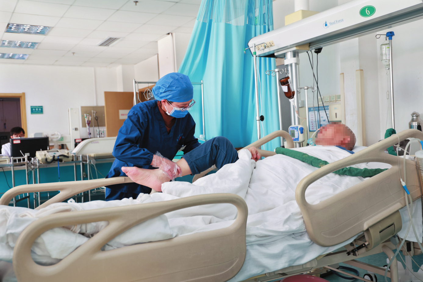 “相比普通病房,ICU護(hù)士的工作要更繁瑣,使用到的醫(yī)療器械要更多,面對(duì)的突發(fā)事件也多,要隨時(shí)做好與‘死神’搏斗的準(zhǔn)備?!比挝南家贿吋?xì)心地更換夾在患者手指的氧飽和度儀,避免患者壓到導(dǎo)線,一邊在忙碌間隙告訴記者,“ICU病房不允許家屬陪護(hù),病人的進(jìn)食、翻身、清洗等所有護(hù)理都由護(hù)士獨(dú)立完成,面對(duì)這些瑣碎的細(xì)活,護(hù)理工作必須要嚴(yán)謹(jǐn)細(xì)微,不能有絲毫怠慢?!?/p>