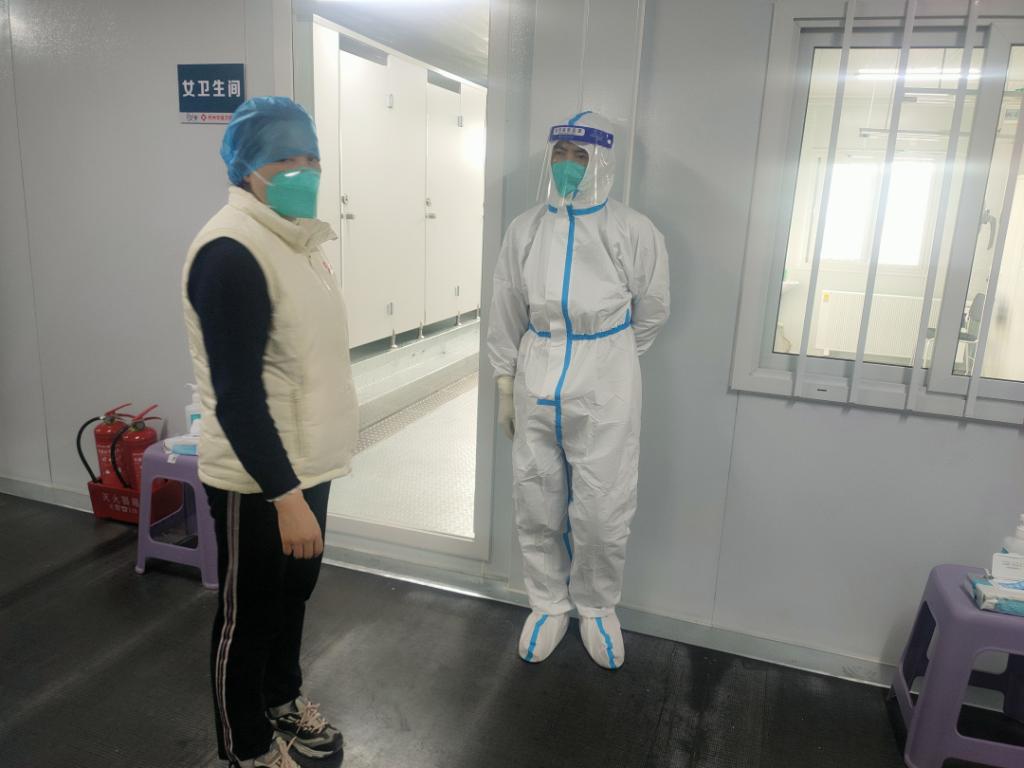 在正式入艙之前,她緊盯每一位隊員的自我防護(hù)動作細(xì)節(jié),口罩的正確佩戴、防護(hù)面屏的使用、手衛(wèi)生等等,一個動作不到位就要重新培訓(xùn)、考核。每天排班,沒有輪到的隊員必須繼續(xù)培訓(xùn),不得放松。她要求“每一個小動作都要做到精準(zhǔn)無誤,每一位隊員都要確保百分之百過關(guān),一點都不能出錯,這是我們每位方艙醫(yī)護(hù)人員必修的基本功”。