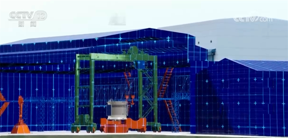 廠房高93米,能夠同時容納兩發(fā)火箭進行總裝測試。它的大門設計非常獨特,由六個升降門和兩個推拉門扇組成。跟隨鏡頭進去看一看。