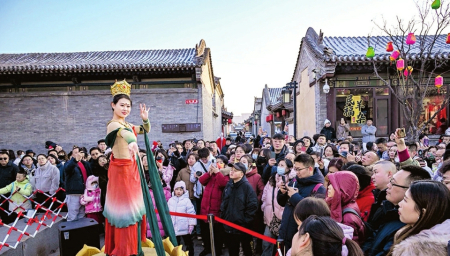 “在大同古城鬧紅火,真是年味兒十足、體驗(yàn)感拉滿?!眮碜蕴挠慰蛷埼奈拈_心地說。春節(jié)假期,大同市文化活動豐富多彩,以大同古城為中心,市縣(區(qū))聯(lián)動開展的“流光溢彩迎新年”“歡歌樂舞過大年”“梨園百花賀新年”“夢幻冰雪逐夢年”“翰墨書香文化年”“古都風(fēng)華盛世年”6個(gè)主題43項(xiàng)地方特色濃郁、群眾參與度高的文化活動,讓市民和游客目不暇接、流連忘返。在華嚴(yán)廣場、鼓樓東西街、下寺坡街、關(guān)帝廟戲臺、純陽宮廣場、大廟角、古城東南邑等處,社火巡游、過大年唱大戲、文化IP演繹、市集等活動精彩紛呈。