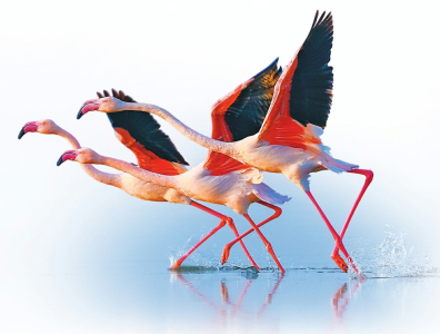 11月23日,初冬的運(yùn)城濕地省級自然保護(hù)區(qū)(鹽湖段)水面澄澈,灘涂鋪展,火烈鳥亭亭玉立,時(shí)而低頭啄食,時(shí)而曲頸戲水,時(shí)而平展振翅。