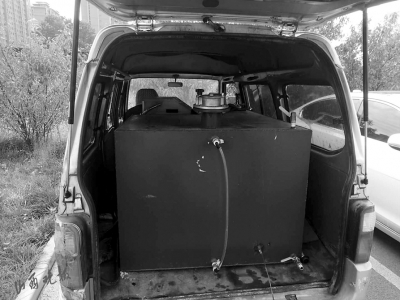 沒有牌照,車頂有監(jiān)控,從來不灑水。一臺灑水車,看似平平無奇,卻暗藏貓膩。8月10日傍晚,突擊執(zhí)法隊來到西環(huán)路上一個物流園區(qū)。在園區(qū)空地,一輛車進入眾人視野。該車車身有“灑水車”字樣,但車輛卻沒有牌照,車頂部還裝一個監(jiān)控攝像頭。在車窗的位置,留有一個手機號碼。執(zhí)法人員打開車底部柜子,發(fā)現(xiàn)這是一臺用灑水車偽裝的黑加油車。柜子里,加油表盤上面有每升汽油的價格,車輛啟動后,加油槍便可以正常給汽車加注汽油。執(zhí)法人員隨即進行了查處,查扣非法油品200升。黑加油車輛由公安交警部門查扣至指定停車場。目前,案件正在進一步調查處理中。