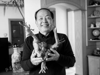 刻印章、畫國畫、練書法,再到近幾年癡迷的根雕,從選材、設(shè)計(jì)到雕刻、打磨,再到拼接、刻字、畫畫,牛鳴遠(yuǎn)把多種藝術(shù)形式融合在根雕中,將別人眼中的廢料打造成獨(dú)具特色的工藝品。他說,這是他對(duì)生活的熱愛,他愿每一位退休后的老人都能找到屬于自己的愛好,將生活過得豐富多彩。