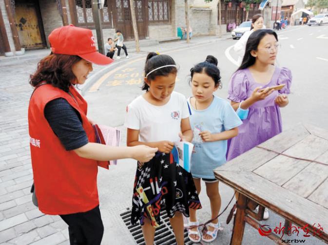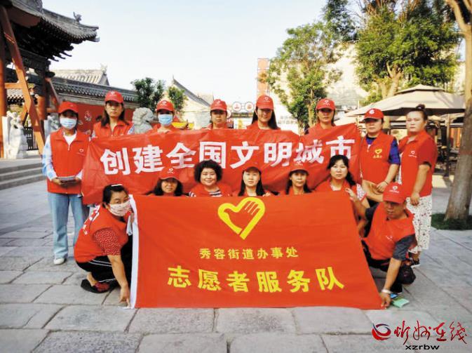 聚是一團(tuán)火,散是滿天星。一個(gè)微笑、一份禮讓、一只援手,都是志愿服務(wù)精神的繽紛綻放。也許,一個(gè)人的力量是有限的,但榜樣帶給市民的正能量是無(wú)窮的。古城游客紛紛表示,作為忻州人,在創(chuàng)建文明城市過程中,要當(dāng)好文明古城的傳播者,主動(dòng)傳遞文明新風(fēng),用自身的行動(dòng)帶動(dòng)更多的朋友們參與到文明創(chuàng)建中。從我做起,從小事做起,讓志愿服務(wù)在忻州古城久行成風(fēng)、眾行成氣,匯聚文明向上的力量,為文明城市創(chuàng)建精彩代言。圖為秀容辦志愿者服務(wù)隊(duì)在忻州古城泰山廟廣場(chǎng)。 (本報(bào)記者 王國(guó)梁)