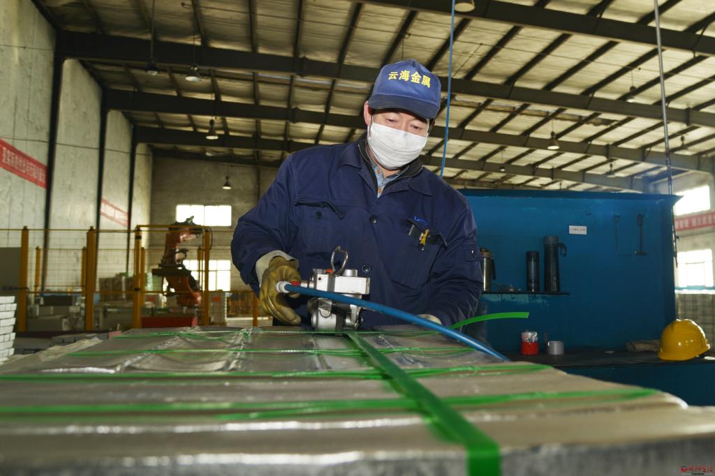 五臺云海鎂業(yè)工人正在打包產(chǎn)品。 張存良 攝