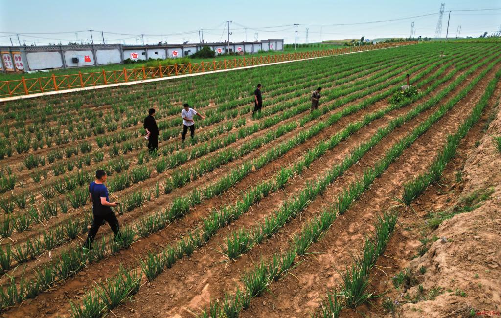 河曲縣樓子營鎮(zhèn)柏鹿泉村紅蔥種植基地。 記者宮愛文攝