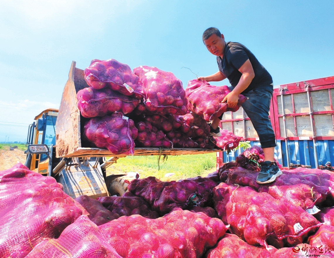 趙文杰興奮地說:“收獲季還沒結(jié)束,訂單就早早來了,今天剛簽下一單,發(fā)往西安市甘泉縣,足足102噸,收入近7萬元?!边@紫皮洋蔥,被鄉(xiāng)親們親切地稱為增收致富的“金疙瘩”,正源源不斷地將田間的希望轉(zhuǎn)化為鼓起的腰包。