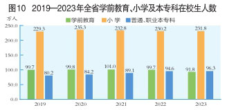 全年全省研究生教育招生2.1萬人,在學研究生6.1萬人,畢業(yè)生1.6萬人。普通本科招生14.7萬人,在校生55.1萬人,畢業(yè)生13.8萬人。職業(yè)本??普猩?3.8萬人,在校生41.2萬人,畢業(yè)生12.5萬人。中等職業(yè)教育招生13.8萬人,在校生41.6萬人,畢業(yè)生13.5萬人。普通高中招生21.2萬人,在校生67.8萬人,畢業(yè)生22.1萬人。初中招生37.1萬人,在校生112.2萬人,畢業(yè)生34.9萬人。小學招生39.9萬人,在校生231.8萬人,畢業(yè)生37.9萬人。特殊教育招生0.4萬人,在校生2.0萬人,畢業(yè)生0.4萬人。學前教育在園幼兒91.8萬人。(圖10)