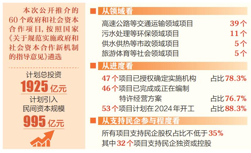 山西日報(bào)訊(記者姚毅)為進(jìn)一步拓寬民間投資領(lǐng)域,促進(jìn)民營經(jīng)濟(jì)發(fā)展壯大,根據(jù)省委、省政府部署,省發(fā)展改革委按季組織向民間資本推介項(xiàng)目,鼓勵(lì)民營企業(yè)以獨(dú)資控股參股等形式參與政府和社會(huì)資本合作項(xiàng)目。近日,省發(fā)展改革委會(huì)同省交通運(yùn)輸廳和相關(guān)市,遴選了60個(gè)擬實(shí)施的政府和社會(huì)資本合作項(xiàng)目,向民間資本公開推介。