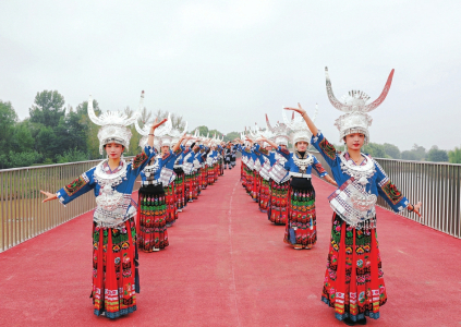 苗族演員以“攔門(mén)酒”儀式歡迎游客。張謙攝 國(guó)慶假期,走進(jìn)榆次瀟河蓮花灣景區(qū),仿佛步入了歡樂(lè)的海洋。數(shù)萬(wàn)盆金色的秋菊簇?fù)碇L(fēng)招展的五星紅旗,而在花海之外,更吸引眼球的是一場(chǎng)濃郁的民族風(fēng)情表演。 10月2日9時(shí)許,一曲高亢的苗族飛歌點(diǎn)燃了現(xiàn)場(chǎng)的氣氛。景區(qū)入口處,百余名來(lái)自貴州的苗族演員身著精美的傳統(tǒng)盛裝,以苗族同胞對(duì)來(lái)客最崇高敬意的“攔門(mén)酒”儀式歡迎八方來(lái)客。銀飾閃爍,鼓聲激昂,歡快的踩鼓舞、互動(dòng)十足的竹竿舞等接連上演,令人目不暇接。 這場(chǎng)“盛世同慶·花舞晉中”民族文化嘉年華由瀟河蓮花灣景區(qū)精心策劃。景區(qū)負(fù)責(zé)人丁蕊介紹,活動(dòng)特邀來(lái)自貴州的苗族藝術(shù)團(tuán)體,于10月1日至8日期間,每日為游客帶來(lái)“攔門(mén)酒”、踩鼓舞、竹竿舞等20余個(gè)原生態(tài)節(jié)目,通過(guò)民族文化交流展現(xiàn)民族團(tuán)結(jié)、共慶華誕的主題。 此外,景區(qū)秋高氣爽的宜人景致也吸引游客流連忘返。穿過(guò)形似蓮花根莖的摩爾光學(xué)橋,由數(shù)萬(wàn)盆菊花打造的多彩花海映入眼簾,眾多游客在此悠閑漫步、拍照留念,享受假日的愜意時(shí)光。 當(dāng)夜幕降臨,苗家傳統(tǒng)長(zhǎng)桌宴在星空下展開(kāi),酸湯魚(yú)、臘味拼盤(pán)等特色美食香氣四溢,敬酒歌聲此起彼伏,情意綿長(zhǎng)。隨后,原生態(tài)的火把節(jié)和大型民族篝火晚會(huì)將節(jié)日氣氛推向極致,游客與演員們手拉手,圍著篝火載歌載舞,歡聲笑語(yǔ)飄向夜空。 張謙 閆曉媛 (責(zé)任編輯:盧相?。?/span> |