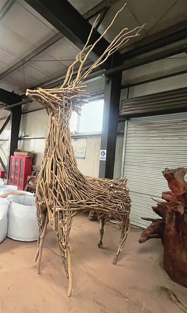 10月24日,記者在該中心看到,工作人員創(chuàng)作了大型鹿形展品及駱駝、袋鼠、犀牛等小型動(dòng)物展品。這些作品生動(dòng)精巧,充分保留了植物材料的自然美感,展現(xiàn)了園林廢棄物的藝術(shù)潛力。將綠廢轉(zhuǎn)化為文創(chuàng)展品,不僅開辟了一條資源化利用的“新賽道”,更將環(huán)保理念融入了藝術(shù)創(chuàng)作,為未來園林垃圾的“變廢為寶”提供了充滿想象力的發(fā)展方向。這一嘗試顯示,綠廢資源的價(jià)值挖掘正從功能層面向文化審美層面不斷深化與拓展。(劉曉亮文/攝)