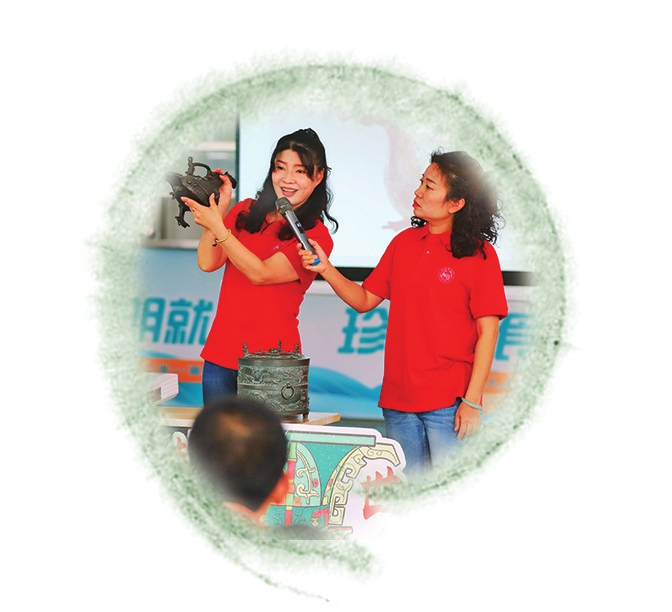 山西博物院與陽(yáng)曲縣首邑學(xué)校共同開(kāi)展“文化晉距離”主題活動(dòng)。志愿者走進(jìn)學(xué)校,讓孩子們?cè)谛@內(nèi)與文物近距離接觸。本報(bào)記者阮洋攝
