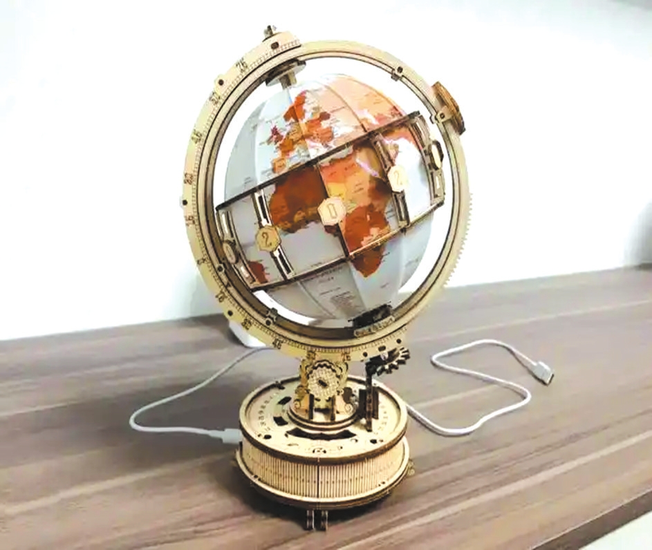 “沒(méi)用一顆釘子、一滴膠水,我們利用了榫卯技藝,讓108塊形狀各異的木構(gòu)件緊密連接,構(gòu)成一個(gè)鏤空的地球,祈盼世界團(tuán)結(jié)、人類和平?!薄堕久挠钪妗肪巹 ⑿弥萃鯛栁耐妫敯噫i、孔明鎖)(以下簡(jiǎn)稱“王爾文玩”)傳統(tǒng)木作技藝非物質(zhì)文化遺產(chǎn)代表性傳承人趙永功說(shuō)。