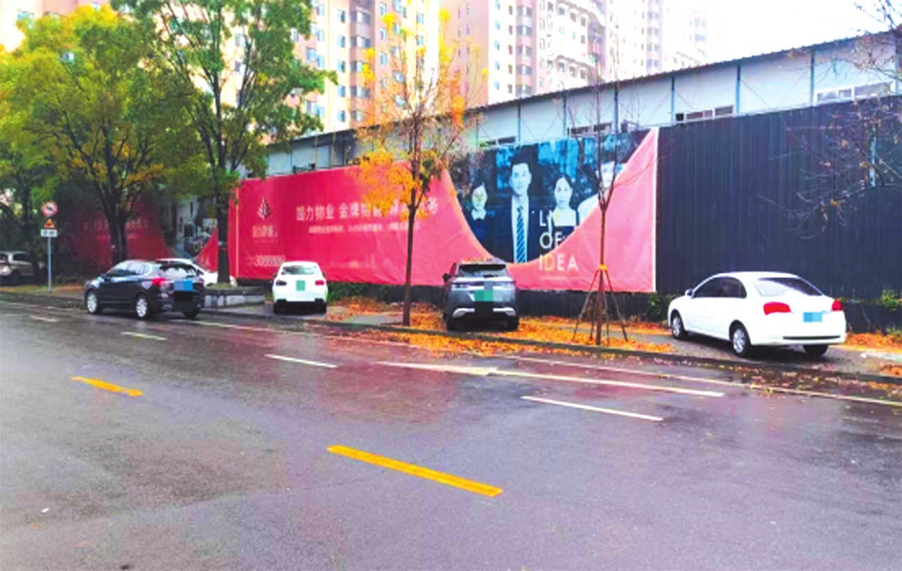 忻府區(qū)?;勐穱π鲁侨跂|側(cè)車輛占用人行通道。