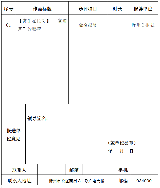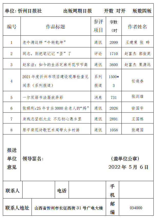 山西新聞獎(jiǎng)報(bào)送作品目錄