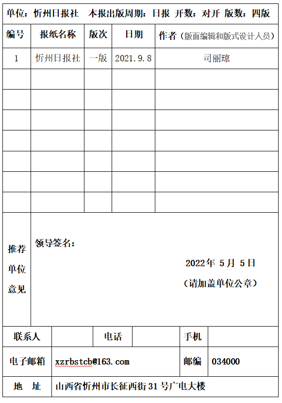 經(jīng)忻州日?qǐng)?bào)社編委會(huì)研究決定,以下作品擬推薦申評(píng)第三十一屆山西新聞獎(jiǎng),現(xiàn)予以公示。有反對(duì)意見者,請(qǐng)將反對(duì)意見書面報(bào)至統(tǒng)籌部。