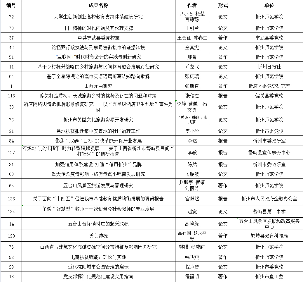 附件:忻州市社會(huì)科學(xué)研究?jī)?yōu)秀成果評(píng)獎(jiǎng)擬獲獎(jiǎng)名單