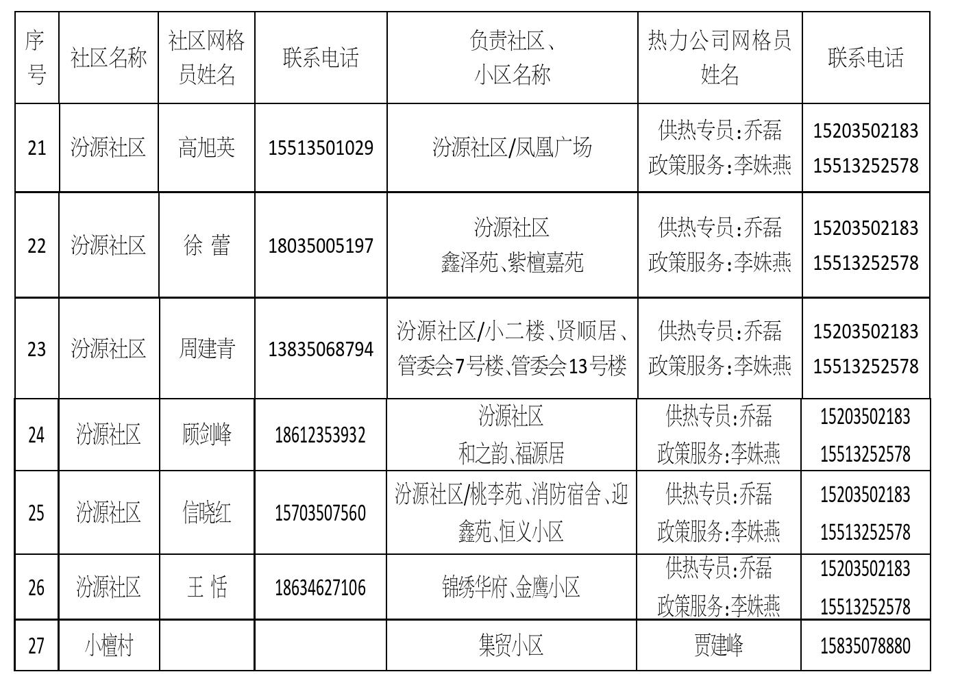 忻州城區(qū)供熱一片區(qū)網(wǎng)格員信息公示