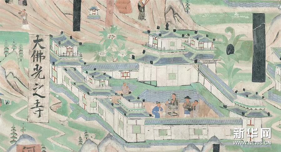 這是敦煌壁畫《五臺山圖》中的“大佛光之寺”(資料照片)。