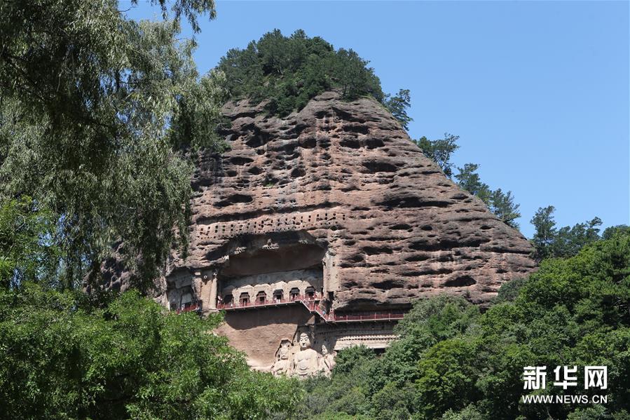 這是9月6日拍攝的麥積山石窟一景