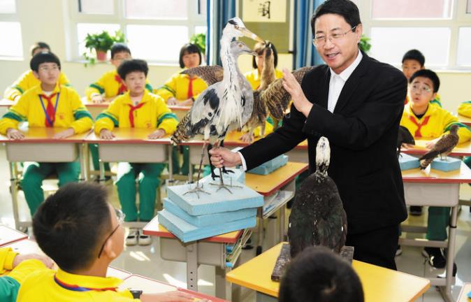 11月是河北省保護(hù)野生動(dòng)物宣傳月,滄州市野生動(dòng)物救護(hù)中心的專家走進(jìn)中小學(xué)校,向?qū)W生們宣講愛(ài)鳥(niǎo)護(hù)鳥(niǎo)知識(shí),引導(dǎo)孩子們從小樹(shù)立尊重自然的生態(tài)文明理念,積極參與野生動(dòng)物保護(hù)活動(dòng)。圖為11月10日,在滄州市河間英華學(xué)校,滄州野生動(dòng)物救護(hù)中心的專家孟德榮教授為學(xué)生們講解愛(ài)鳥(niǎo)護(hù)鳥(niǎo)知識(shí)。新華社發(fā) 傅新春 攝 (責(zé)任編輯:盧相?。?/span> |